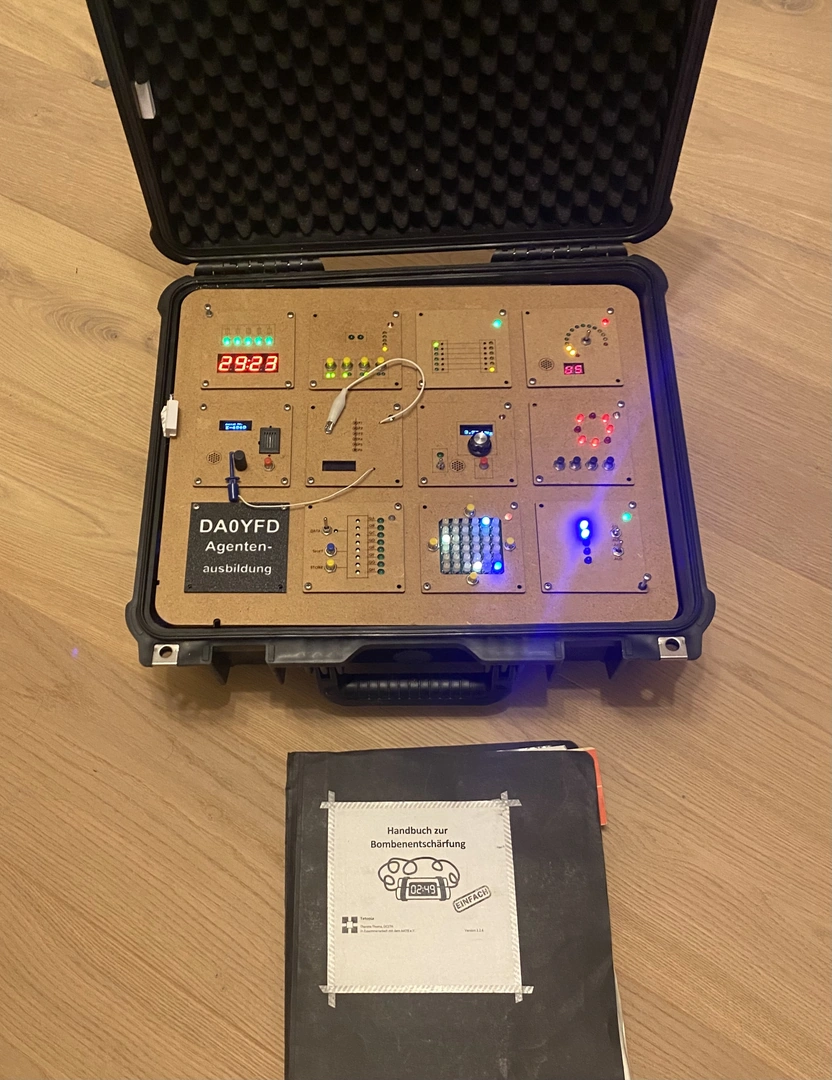 Mit dem „AS-420 Bombenkoffer" bist du bereit für eine spannende Herausforderung, die Teamarbeit und Kommunikation auf die Probe stellt? Dann komm vorbei und erlebe den fesselnden „ Bombenkoffer“! In diesem einzigartigen Spiel musst du als Team zusammenarbeiten, um eine Bombe zu entschärfen.